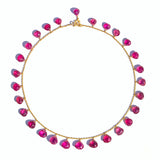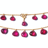 The legendary briolette necklace was created in 1997 and here is a bew version is composed of glistening pink tourmaline briolettes  and a fine, entirely hand-crafted, gold chain.